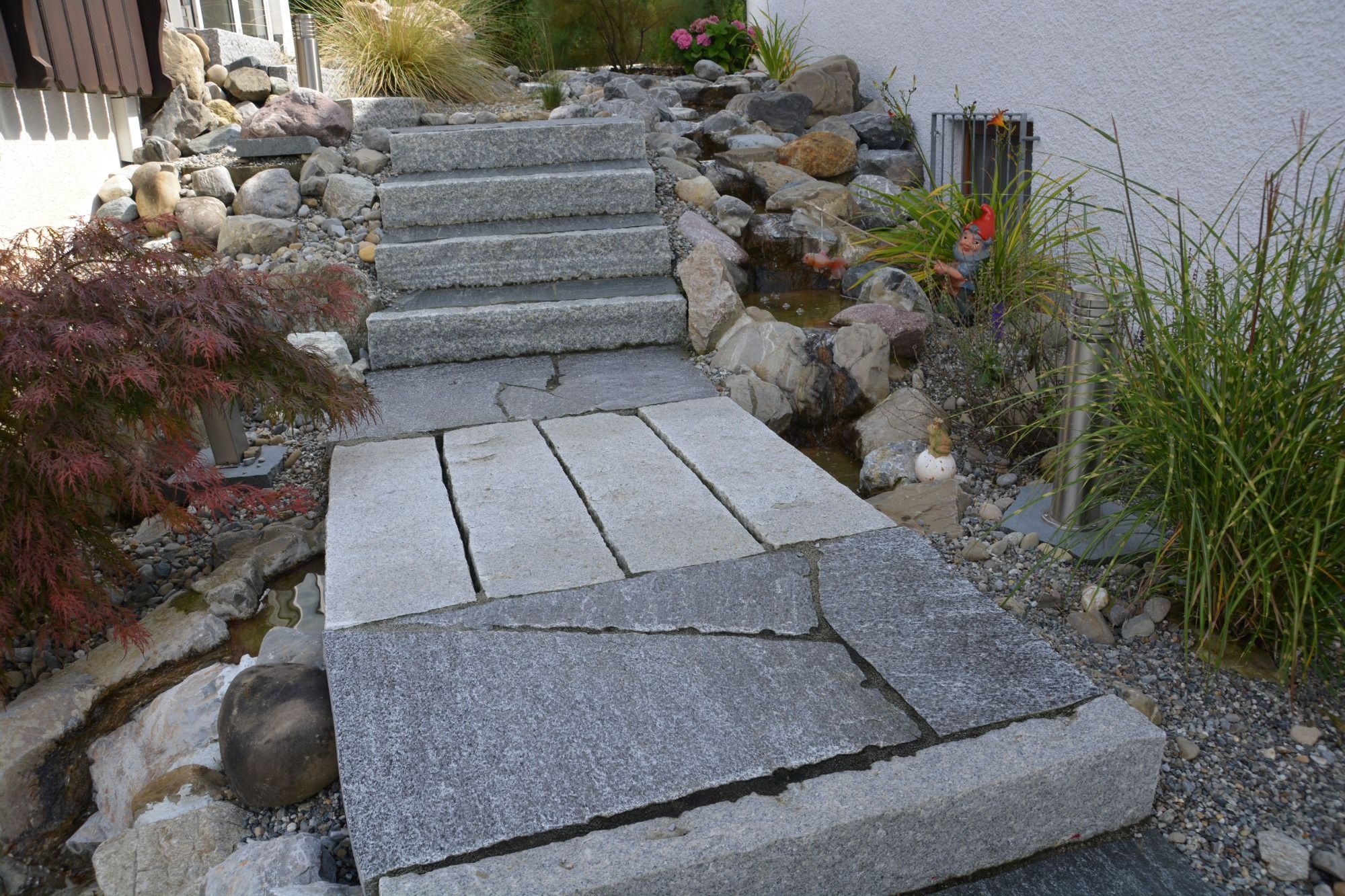 Ob Garten-Treppen oder Hauszugänge, ob aus Beton oder Naturstein - Sie können sich sicher sein, wir zaubern Ihnen die perfekte Stufenanlage.